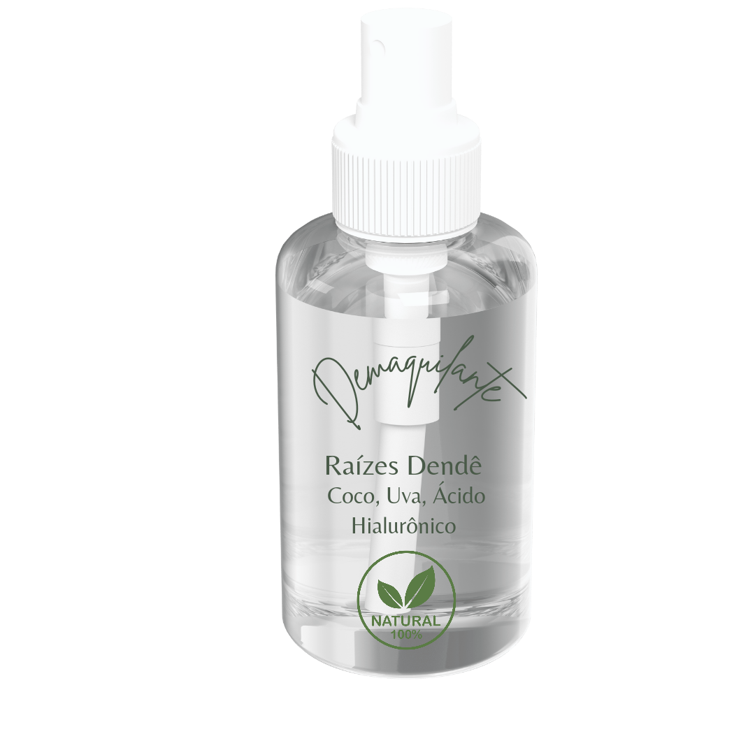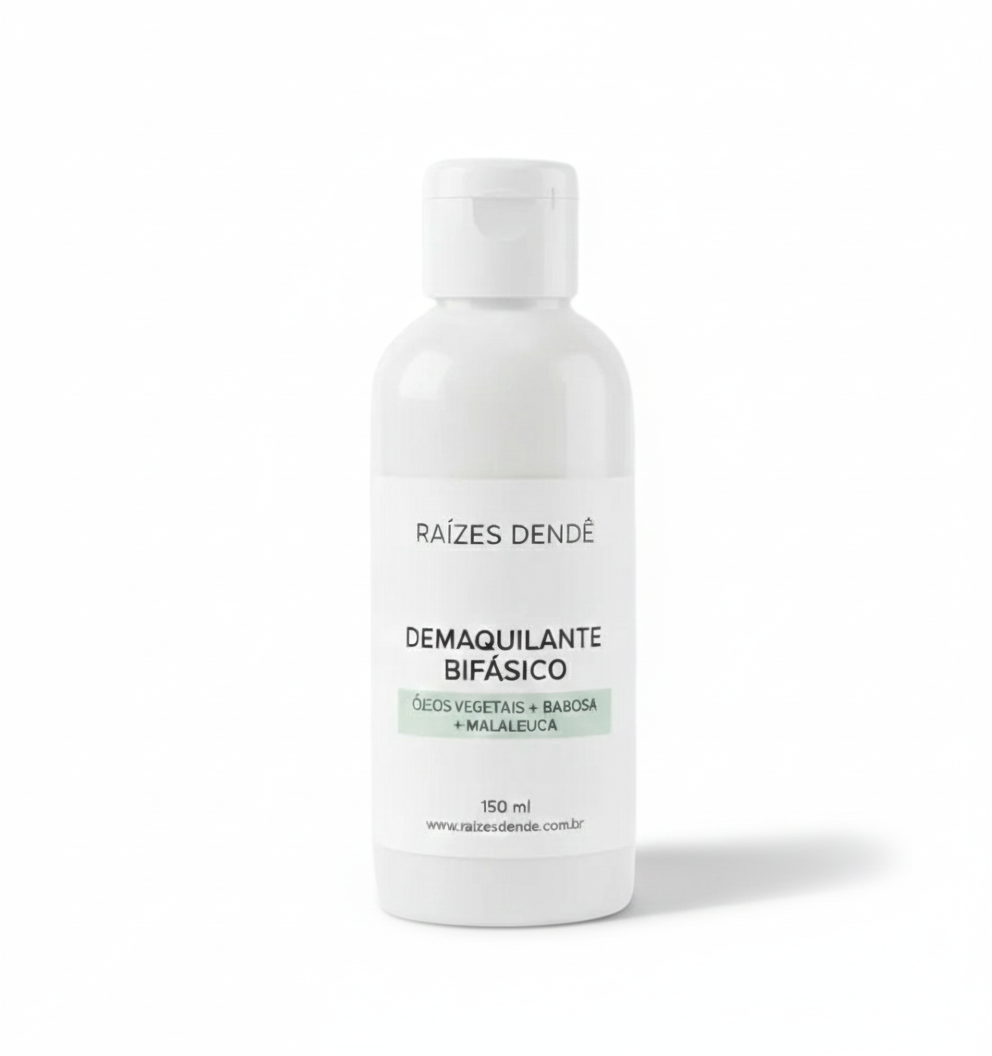 Nosso demaquilante bifasico, retirada todos os resíduos de maquiagem limpando e purificando a pele, produto vegano e orgânico feito com blend de óleos vegetais, água termal.